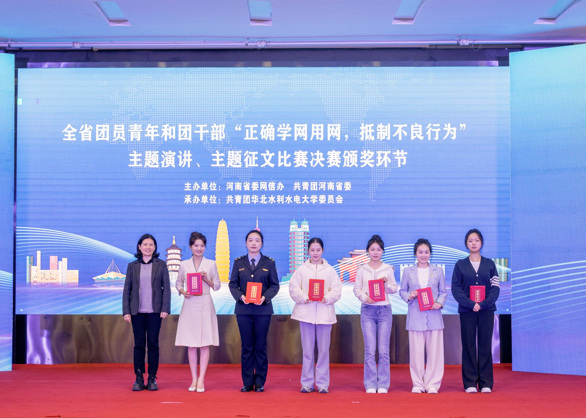 11月13日,由河南省委网信办、共青团河南省委主办,共青团华北水利水电大学委员会承办的“全省团员青年和团干部正确学网用网,抵制不良行为”主题演讲比赛决赛在华北水利水电大学举行。文史与传媒学院24级播音与主持艺术专业学生赵彤凭借扎实的专业素质,在比赛中斩获一等奖。