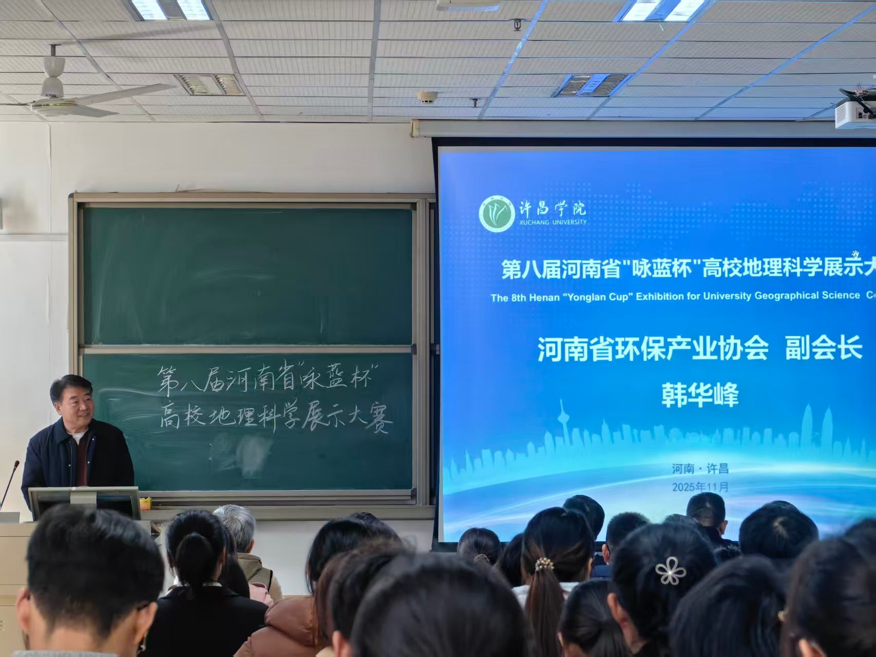 11月21日,河南省第八届 “咏蓝杯”高校地理科学展示大赛决赛在我校成功举办。河南省环保产业协会副会长、二级巡视员韩华峰,原河南省环境监测中心主任、二级巡视员邵丰收,原河南省生态技术中心教授级高工董润莲,河南咏蓝环境科技有限公司董事长魏贵臣等出席大赛开幕式。来自全省多所高校的27支队伍、近200名师生参与决赛角逐。
