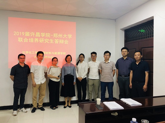 5月24日,我校与郑州大学联合培养的2名研究生张利霞、徐辉硕士论文答辩会在化学化工学院学术报告厅举行。郑州大学张鹏教授、河南大学陈珂教授、河南工业大学张猛教授和我校何伟伟教授、张艳鸽教授、李品将副教授组成答辩委员会。