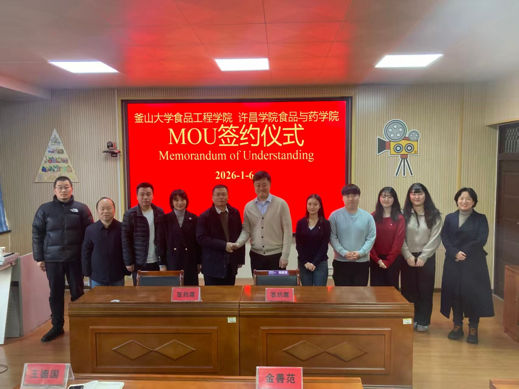 仪式上,金善范教授与食品与药学院院长王德国代表双方共同签署备忘录。备忘录约定,釜山大学未来地球研究所与许昌学院食品与药学院将围绕联合研究、技术合作、学术交流等领域开展深度合作,双方明确将通过共建培训项目、共享研究设施、定期举办学术会议等形式,推动科研资源互补与人才协同培养。