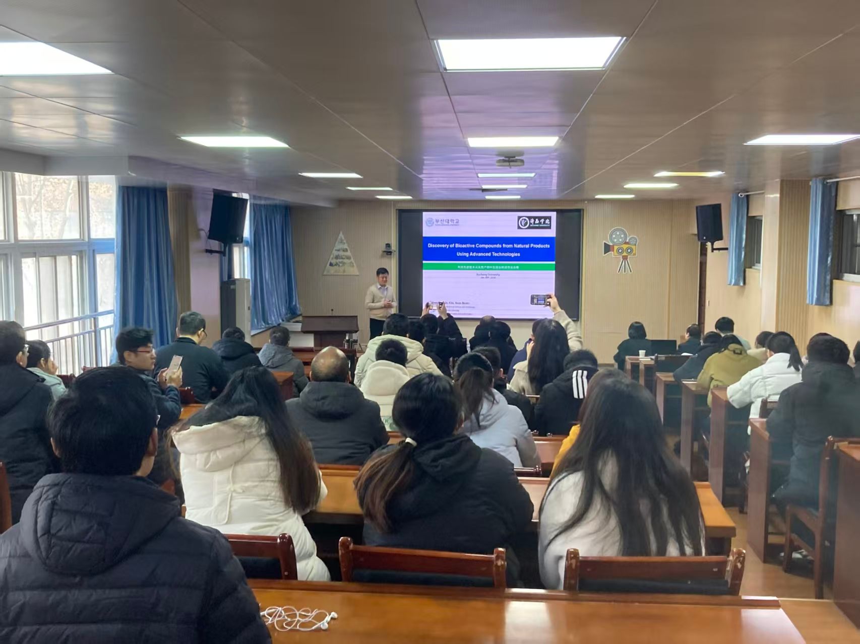 作为合作框架下的首场学术活动,金善范教授以“基于先进技术的天然生物活性分子发掘”为题作专题报告。他系统介绍了定量核磁共振、逆流色谱分离等先进技术在天然产物分离纯化、结构解析及标准化研究中的核心作用,并结合其团队研究成果,展望了功能性食品开发的未来方向。讲座现场,两校师生就技术实操难点、成果转化路径等话题展开深入讨论,金善范教授对提问进行了逐一解答。