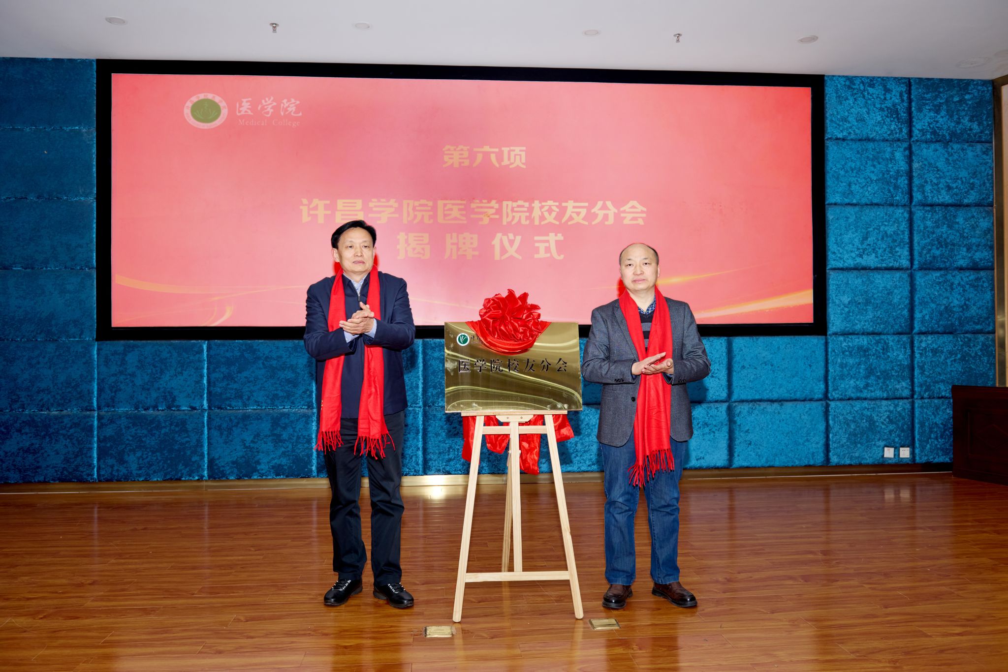 会上,申占伟为医学院校友分会新当选的名誉会长、会长、副会长颁发聘书,并与分会会长李学峰共同为校友分会揭牌。