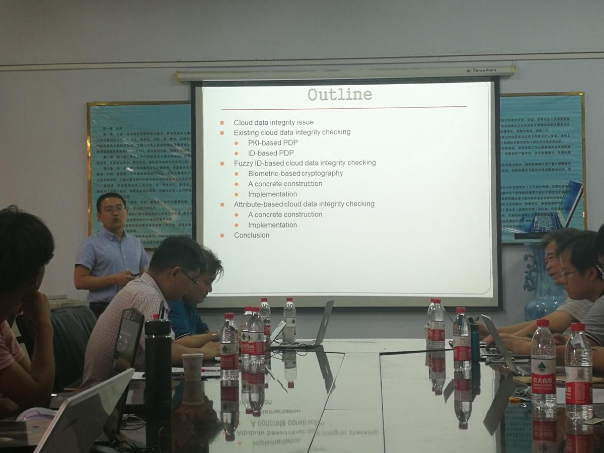 禹勇教授以《云数据完整性验证》为题,介绍了云计算环境下数据完整性验证的进展、存在的问题,深入阐述了基于RSA标签及挑战响应机制的数据验证方案、基于属性的云计算环境下数据完整性验证方案及基于生物特征的云计算数据审计机制。同时,根据已有方案存在的问题、结合用户需求和区块链技术提出了云计算数据完整性验证方案。