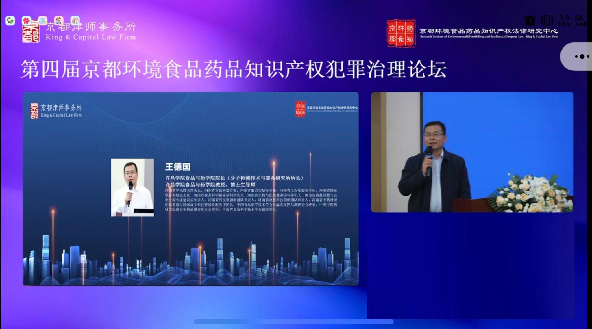 4月25日,第四届京都环境食品药品知产犯罪治理论坛在北京召开。我校食品与药学院王德国教授受邀参会,并作专题学术报告。