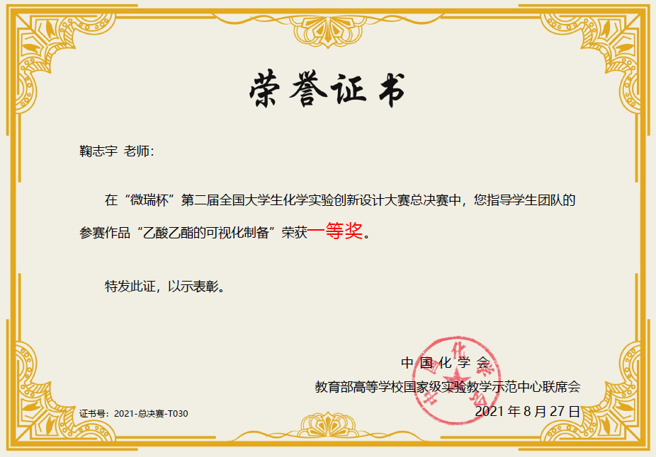 我校学生在第二届全国大学生化学实验创新设计竞赛中荣获一等奖