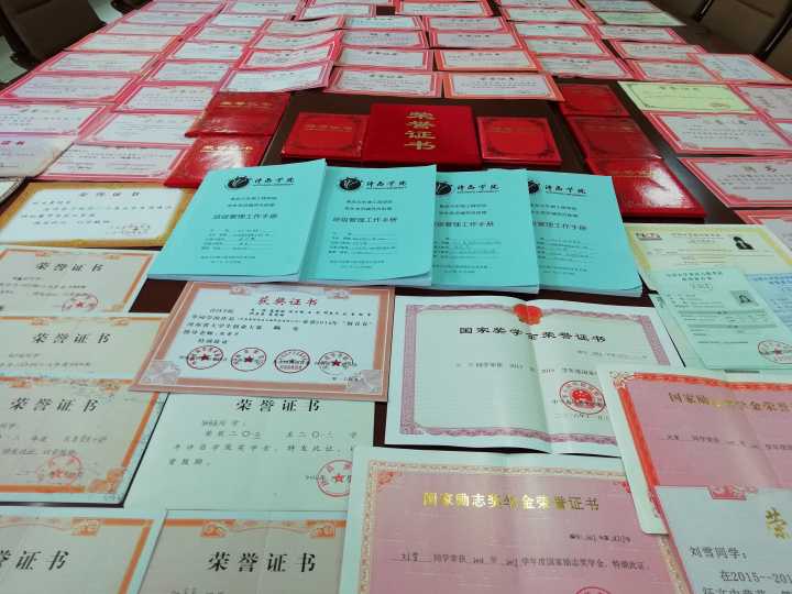 在工作上多次荣获省级和校级等荣誉称号的他们除了是院系辅导员的好帮手,更是学弟学妹眼中名副其实的“学霸”。8名班导生中,一人曾获国家奖学金,三人多次荣获国家励志奖学金,许昌学院奖学金和国家助学金也被其余几人纷纷“收入囊中”。计算机专业人才证书、计算机二级证书、英语四六级证书、营养师三级证书、中式烹调师三级等行业资格考试也是拿证“拿到手软”。