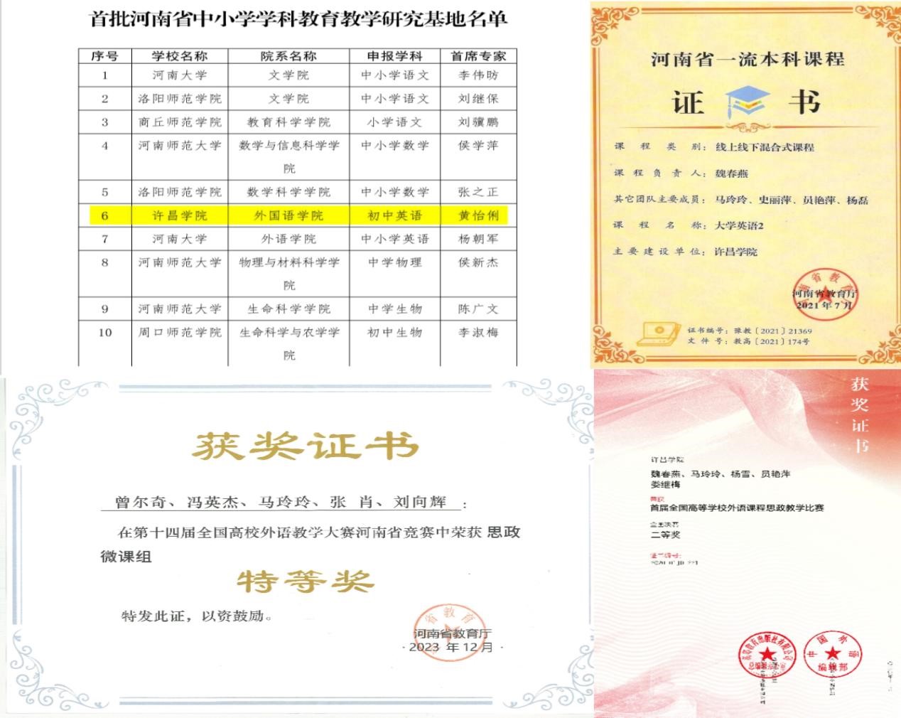 加强思想建设,引领学科发展。持续加强课程思政建设,获国家级外语课程思政教学设计奖2项、全国高校外语教学大赛思政微课组河南省特等奖1项,两门课程获批省级思政样板课。英语专业先后获评省级特色专业、国家一流专业建设点,顺利通过教育部师范类专业第二级认证;翻译专业获批省级重点学科;学院获批河南省首批中小学学科教育教学研究基地——“初中英语学科教育教学研究基地”,获批河南省中外人文交流基地——“河南省钧瓷文化国情教育基地”。