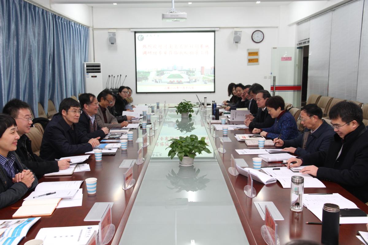 1月18日,受河南省发改委委托,以中国(河南)创新发展研究院院长喻新安为组长、河南省高校创新创业协会常务副会长王文亮为副组长的河南双创基地调研组一行11人,到我校开展首批河南省双创基地调研活动。我校在创新创业学院一楼会议室召开座谈会,院长赵继红主持座谈会,副院长郭涛及相关部门负责人参加了座谈会。