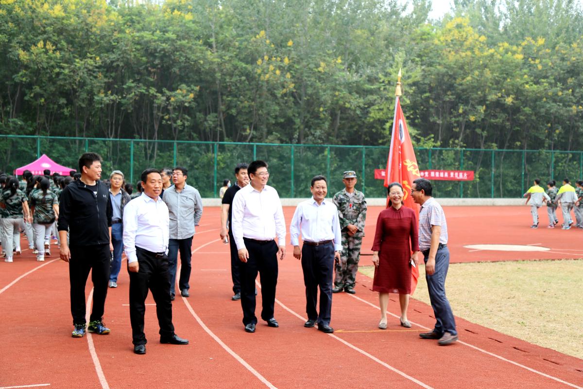 9月17日下午,党委书记闫纪建、副书记孙海在承训负责人和党政办公室、党委宣传部、团委、学生工作(人武部)、保卫处等相关部门负责人的陪同下来到新生军训现场,视察我校2018级新生军训情况。