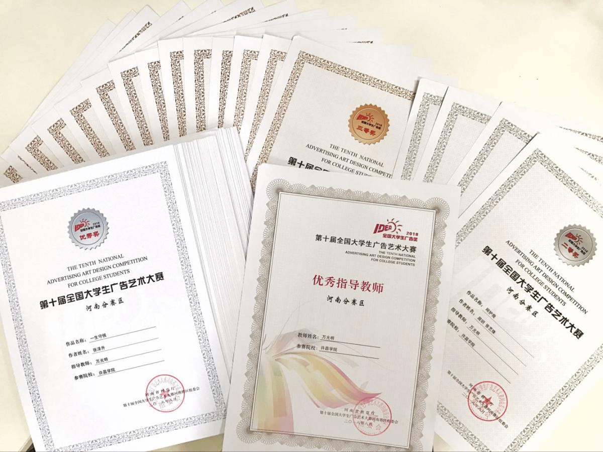近日,由教育部高等教育司主办、教育部高等学校新闻学学科教学指导委员会组织、中国传媒大学与中国高等教育学会广告教育专业委员会共同承办的第十届全国大学生广告艺术大赛评选活动落下帷幕。我校文学与传媒学院首次组织学生参加此次大赛并获得全国赛优秀奖3个,河南赛区二等奖4个、三等奖14个、优秀奖74个。我校万光明老师获得省级优秀指导教师奖。