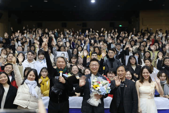 在影片放映过程中,在场师生时而欢笑,时而落泪,观影体验温馨感人。电影放映结束后,导演赵琦和主演林永健上场与同学们进行了交流互动,分享了电影创作中的心路历程和观影感受。现场师生就影片中的语言、拍摄的取景、以及作品情感纠葛等方面与主创人员展开了热烈讨论。
