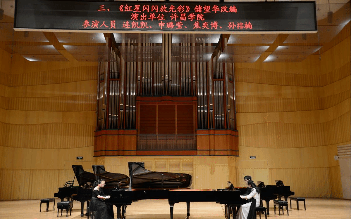 2018年12月30日晚,由我校音乐舞蹈学院选送的双钢琴改编曲《红星闪闪放光彩》,在河南省艺术中心音乐厅成功参演致敬改革开放四十周年钢琴演奏系列活动之2019新年钢琴音乐会暨河南高校多钢琴重奏合奏音乐会。