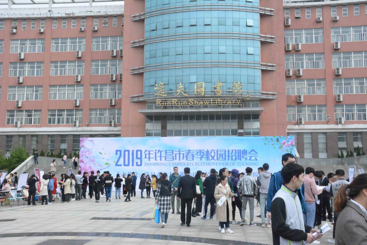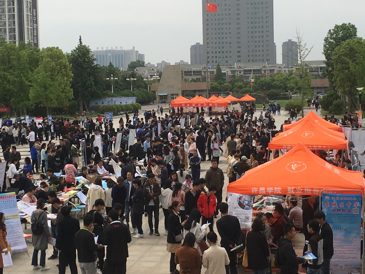 4月25日,由许昌市人力资源和社会保障局和我校联合举办的许昌市2019届高校毕业生春季供需洽谈会在我校弘毅广场举行。