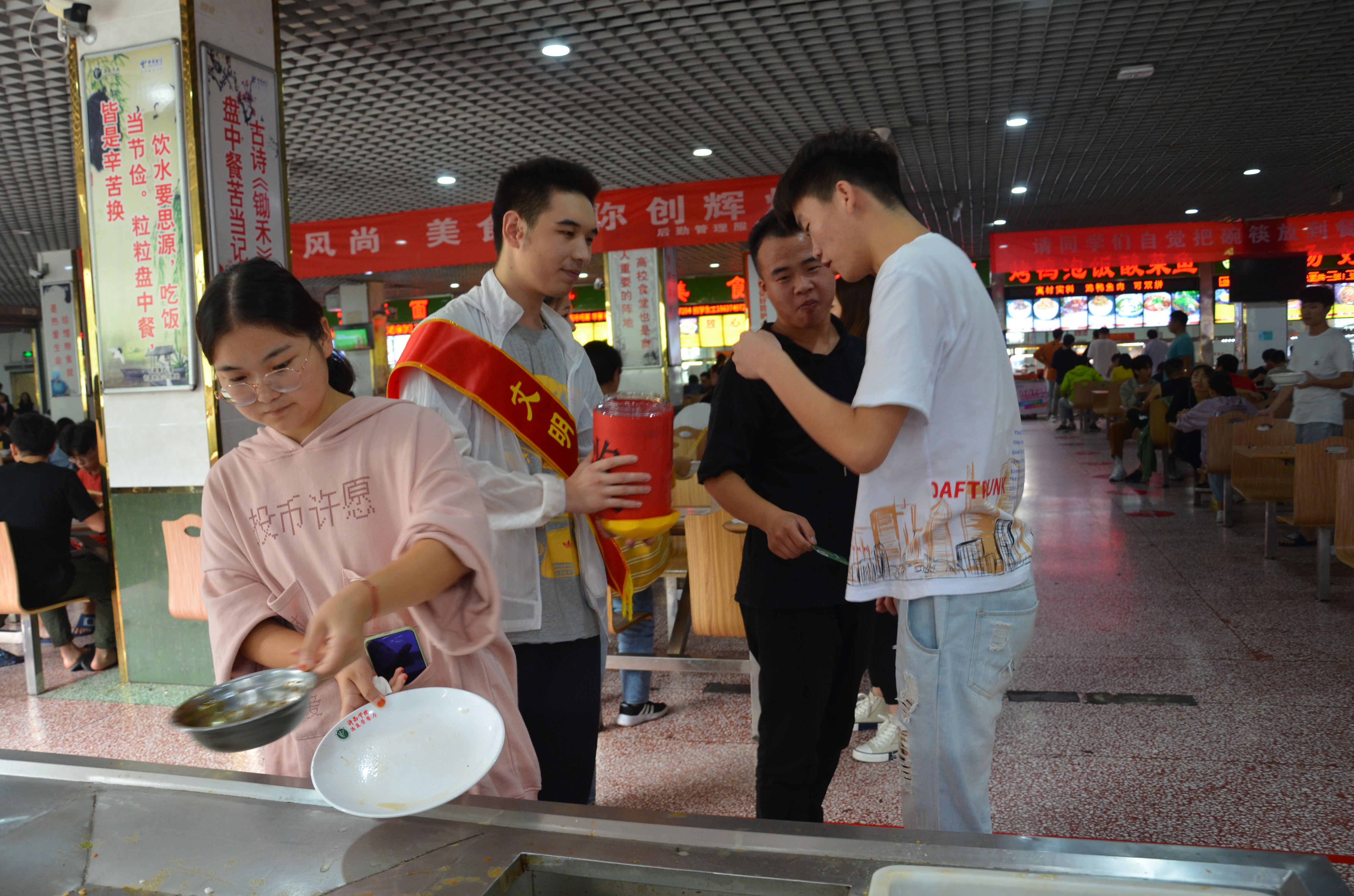 后勤管理服务中心主任刘军伟在开幕式上致辞并发表倡议。他倡议全校师生带头倡导崇尚节俭、科学饮食、合理消费的用餐理念,树立文明餐桌新风尚,培养文明用餐良好习惯,遏制餐饮浪费现象。学生代表和餐组代表分别发言,与会领导、学生代表在“文明餐厅,光盘光荣”幕布上签名。大家纷纷表示,签下的不仅仅是名字,更是一份与粮食浪费作斗争,争做光盘行动践行者的承诺。