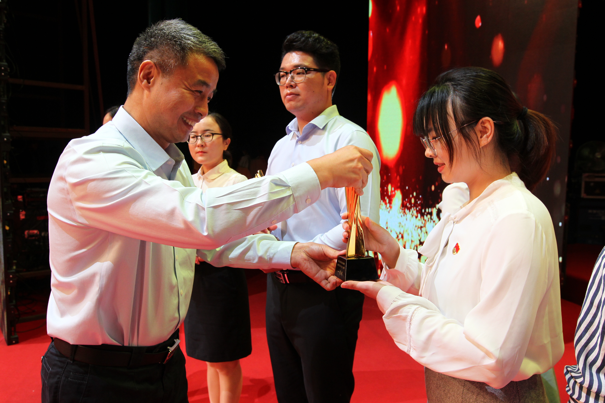 颁奖仪式上,省委高校工委专职委员何秀敏、许昌市副市长李海峰、许昌学院院长岳修峰向获奖的单位和个人颁奖。