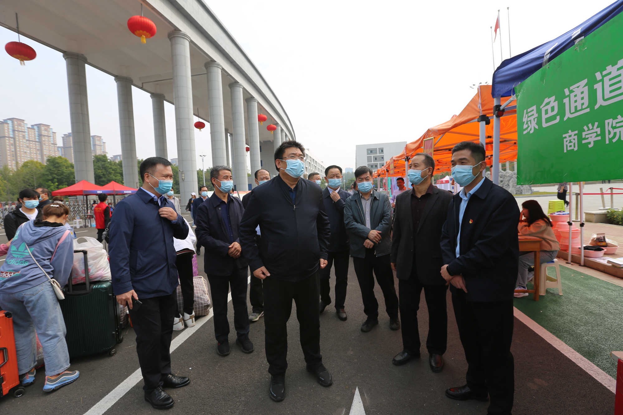 10月9日,校党委书记闫纪建,院长岳修峰,党委副书记孙海,副院长崔斌、黄怡俐、周新峰、潘春彩,纪委书记王东晓等分别到校本部和兴华路校区迎新现场,察看迎新工作,慰问参与迎新的教职工和学生志愿者。