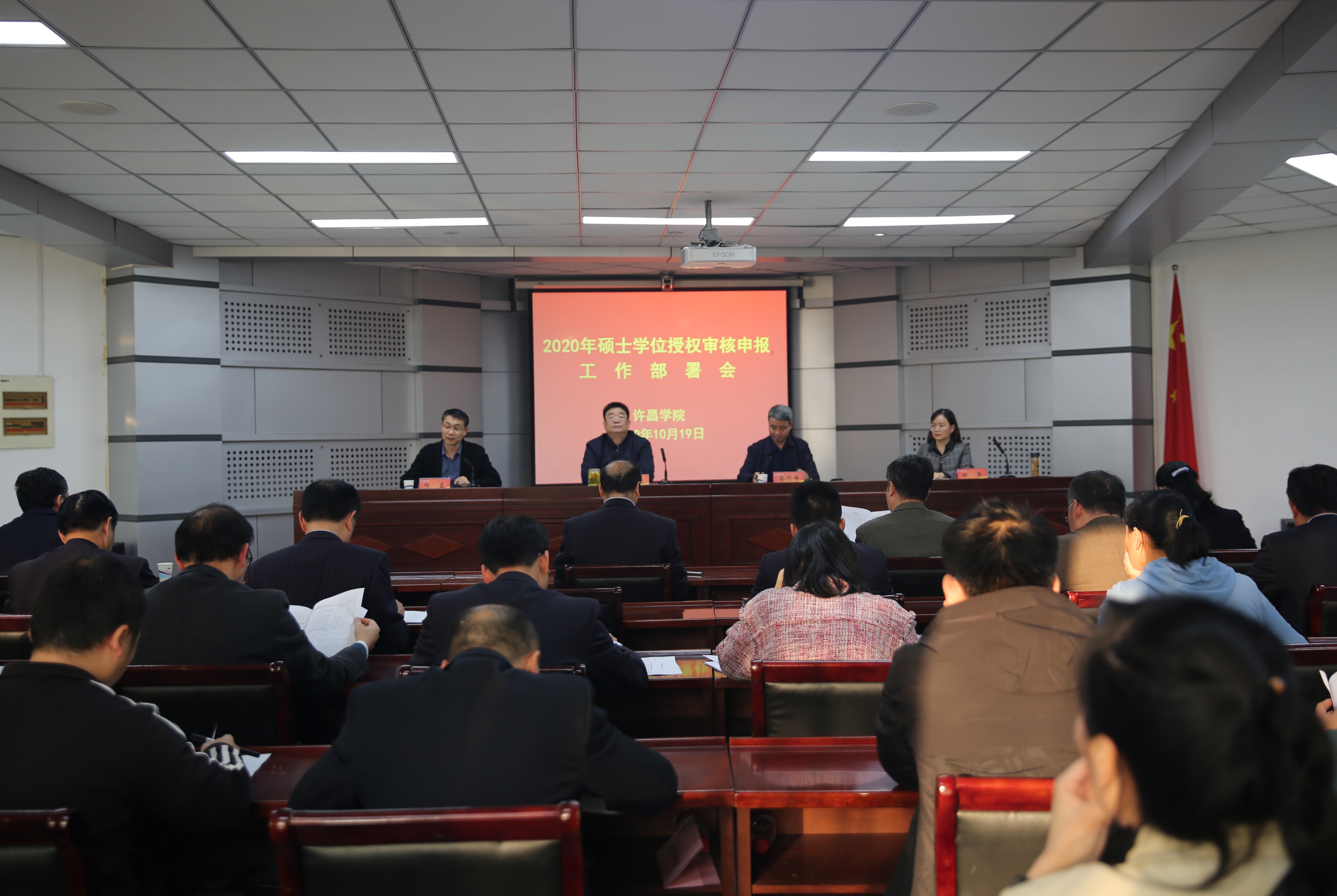 10月19日下午,我校在办公楼第三会议室召开2020年硕士学位授权审核申报工作部署会,我校硕士学位授予单位立项建设工作领导小组成员、办公室成员及专业学位类别申报小组成员参加了会议,校党委书记闫纪建、院长岳修峰出席会议。会议由副院长郑直主持。