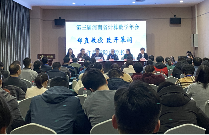 12月26日-27日,由我校和郑州大学联合举办的第三届河南省计算数学年会在许昌中原国际饭店召开。许昌学院副院长郑直教授、郑州大学陈绍春教授、河南省数学会秘书长石东洋教授出席会议。来自中国科学院数学与系统科学研究院、北京工业大学、北京航空航天大学、太原理工大学、郑州大学、河南理工大学、河南财经政法大学等30余所高校和科研院所的80余名学者参加年会。