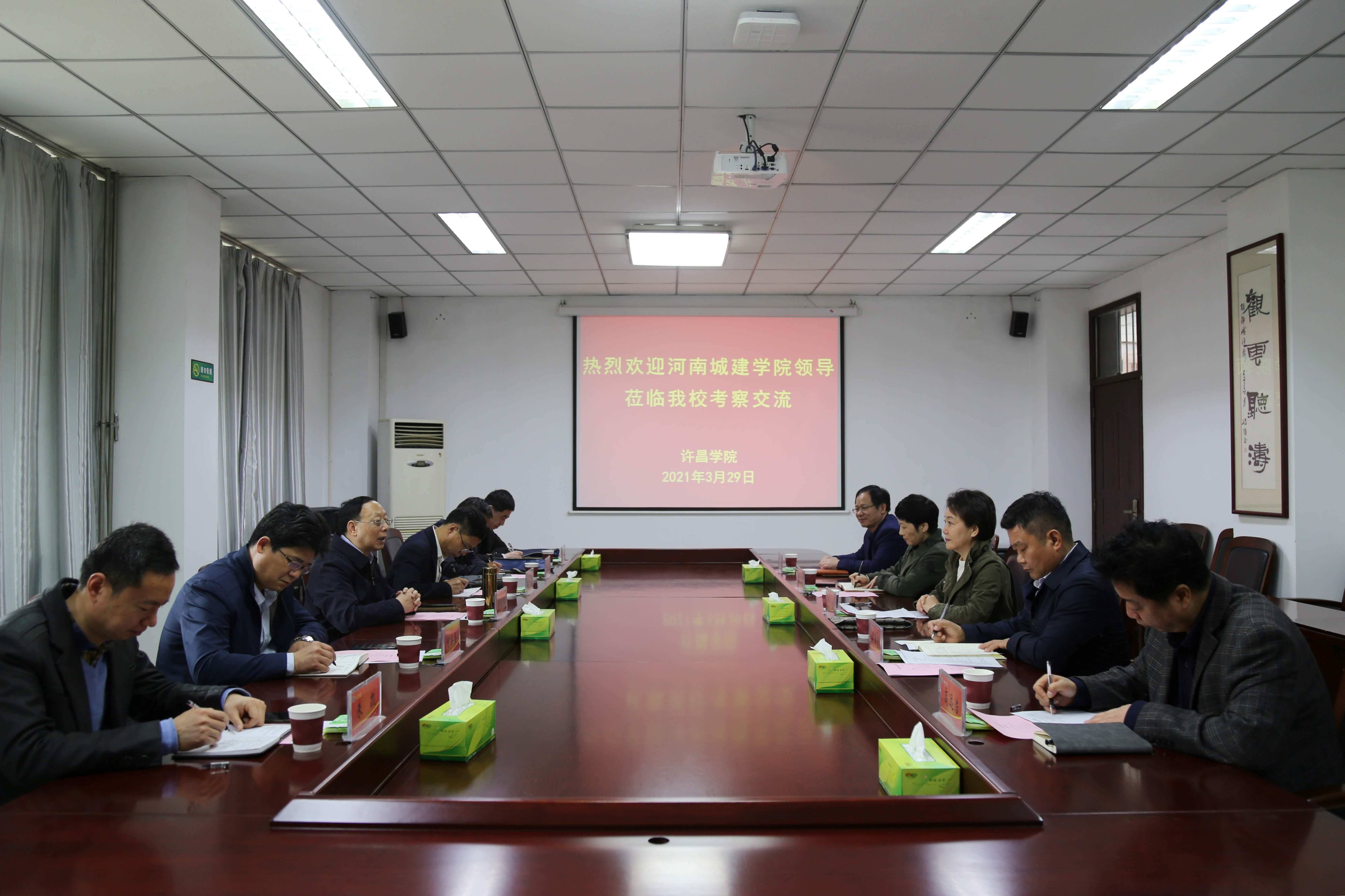 3月29日,河南城建学院副校长周颖杰带领相关部门负责同志一行6人来我校考察交流。我校在办公楼第一会议室召开座谈交流会。副院长黄怡俐出席会议,发展规划处(高等教育研究所)、教务处、信息化管理中心等单位负责人参加座谈交流。