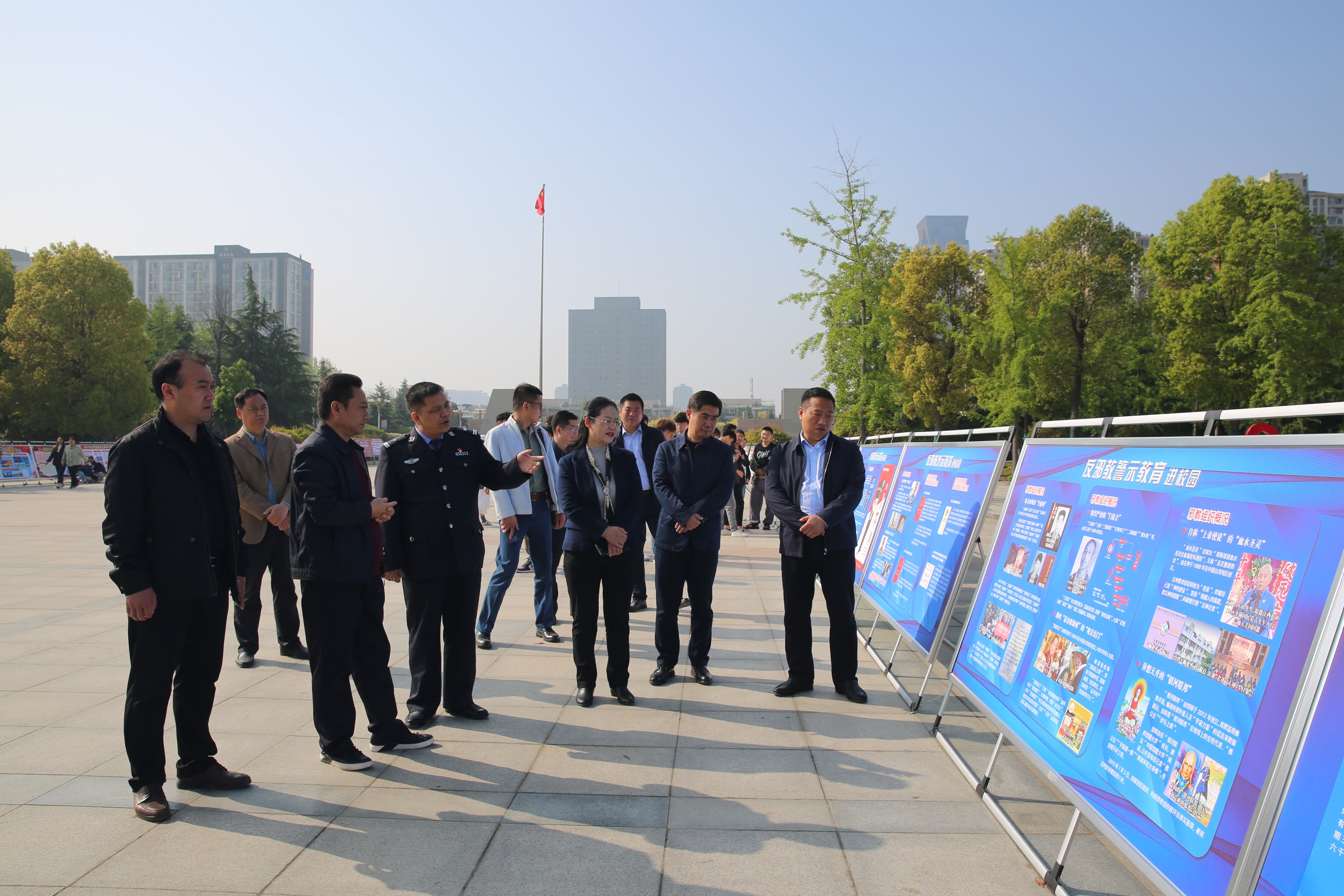 4月15日上午,党政办公室、党委保卫部联合各二级学院在弘毅广场开展国家安全教育日主题展览,校党委副书记孙海、副院长潘春彩和许昌市公安局国保支队、东城公安分局八龙路派出所相关领导、学校相关职能部门负责人到主题展览现场指导,查看总体国家安全观、国家安全相关法律法规、反邪教警示教育、反恐防暴、保密知识等宣传版面。