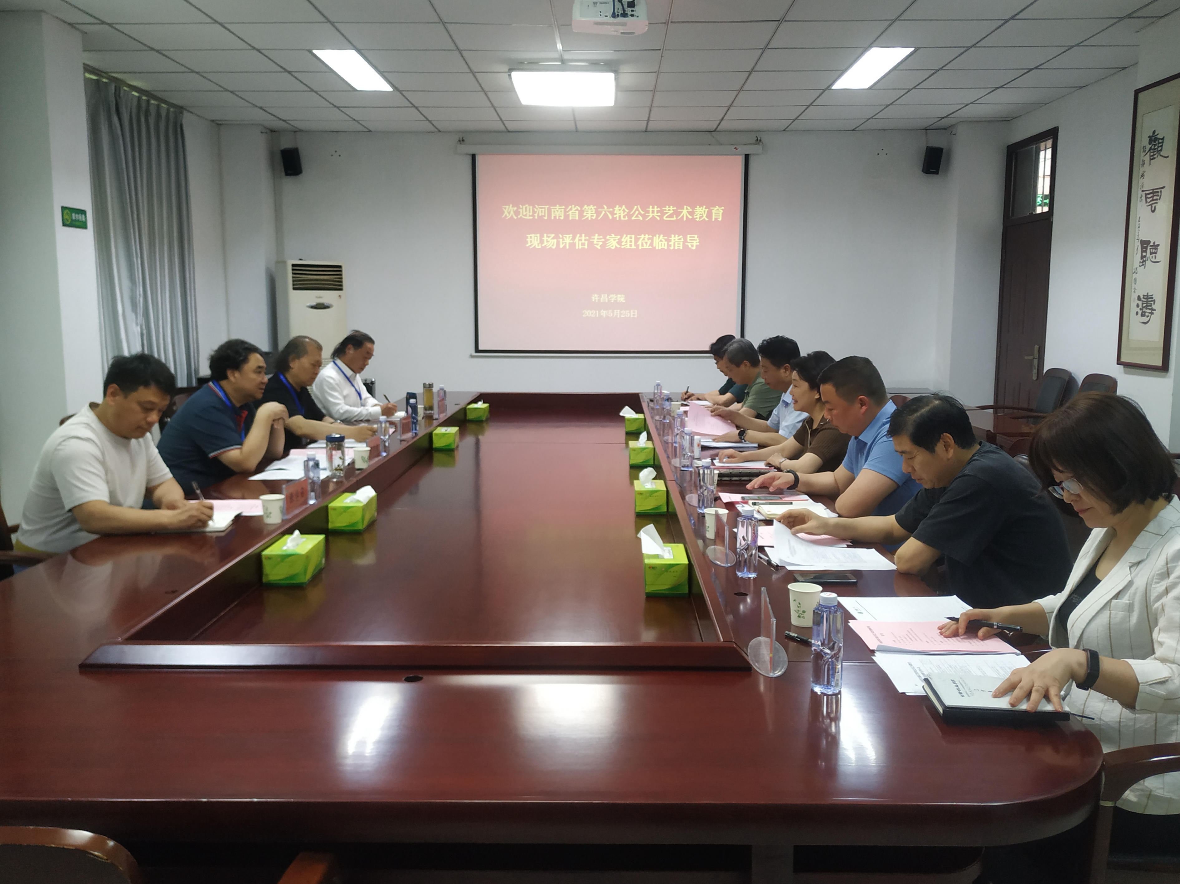 5月25日,河南省第六轮公共艺术教育工作评估专家组一行4人在河南省教育厅省政府督学、原河南省文联副主席李仲党组长的带领下到我校对公共艺术教育工作进行全面检查评估。汇报会在办公楼第一会议室举行。副院长黄怡俐出席会议,教务处等职能部门负责人及艺术教育委员会委员参加会议,会议由副院长黄怡俐主持。