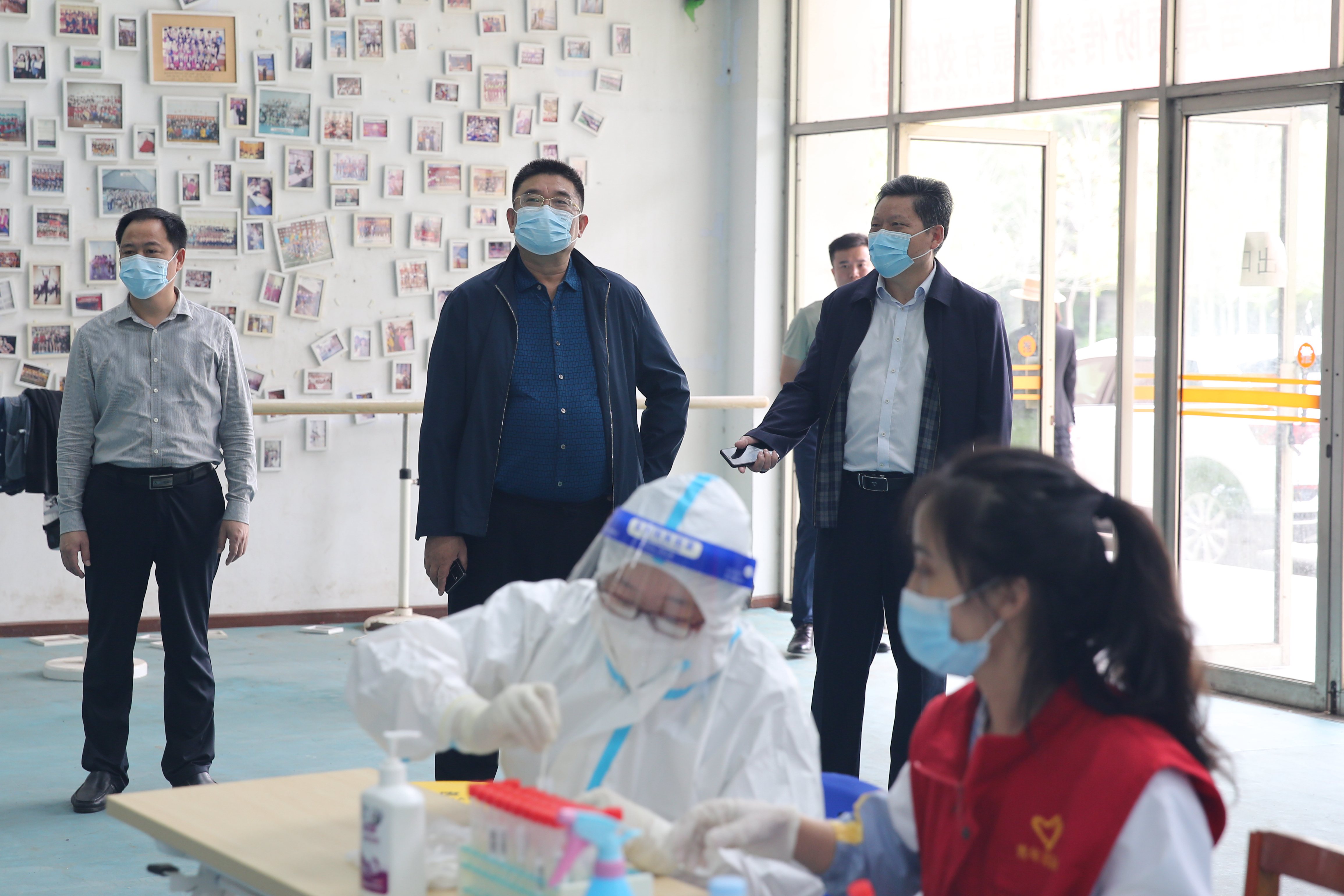 校党委书记闫纪建,院长岳修峰,党委副书记孙海,副院长高金星、潘春彩,纪委书记王东晓到各个检测点检查指导工作,向医护人员和志愿者表示慰问、感谢,希望大家在做好自我保护的同时努力工作,齐心协力完成好本次全员检测。