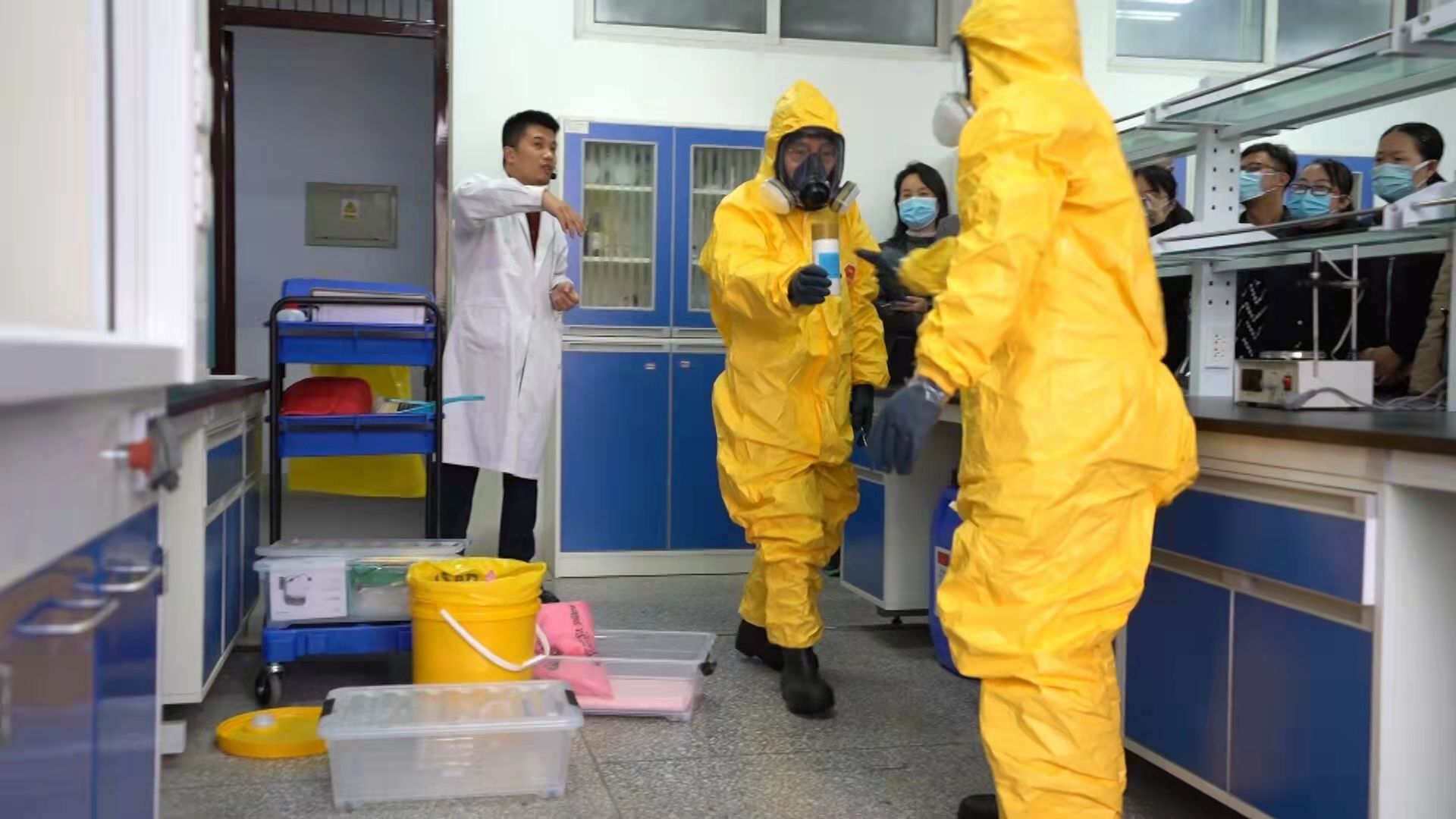 11月5日,我校实验室安全文化宣传月开幕仪式暨危化品泄漏应急演练活动在弘毅广场举行,副院长崔斌出席开幕式。实验室与设备管理中心、保卫处、化工与材料学院、食品与药学院、城市与环境学院、医学院等二级学院(部)负责领导、实验室安全工作具体负责人和学生代表130余人参加了开幕式。实验室与设备管理中心主任蔡子亮主持开幕式。