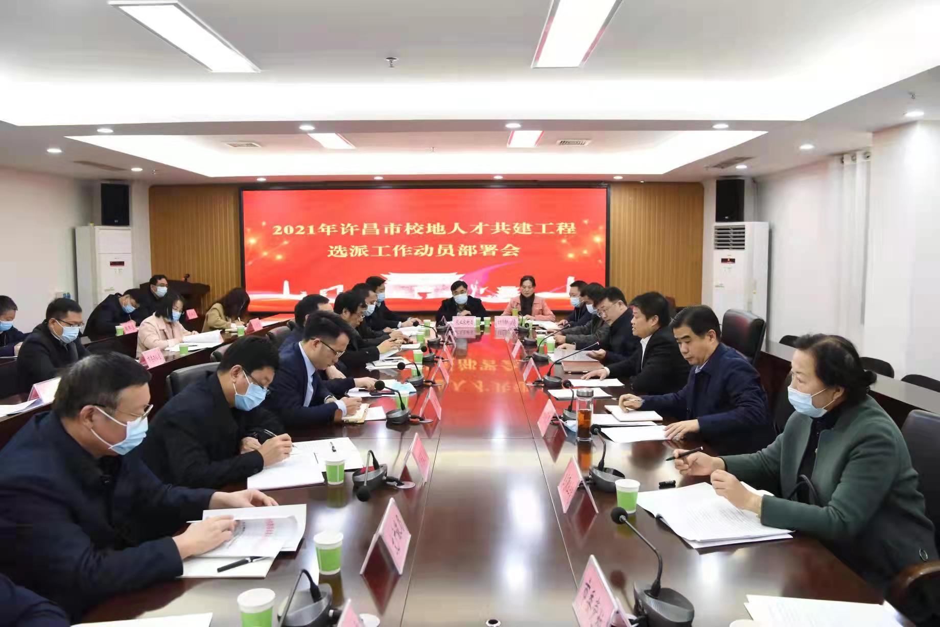 为鼓励引导校地优秀人才流动、促进产学研合作对接、培养锻炼优秀人才、服务经济社会发展,11月11日,许昌市校地人才共建工程工作动员部署会在市委组织部会议室召开,市委组织部副部长刘哲、许昌学院党委组织部部长冯晓民出席会议并讲话,挂职单位所在县(市、区)组织人事部门分管负责同志、兼职院校及市直相关单位分管副职、选派人员代表参加会议。2021年校地人才共建工程正式启动。