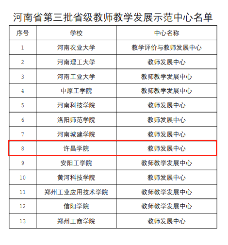 12月6日,河南省教育厅下发了《关于公布第三批省级教师教学发展示范中心的通知》(教高〔2022〕375号),经过学校申报、专家评审、网上答辩等环节,我校教师发展中心等13个中心成功获批河南省第三批省级教师教学发展示范中心。