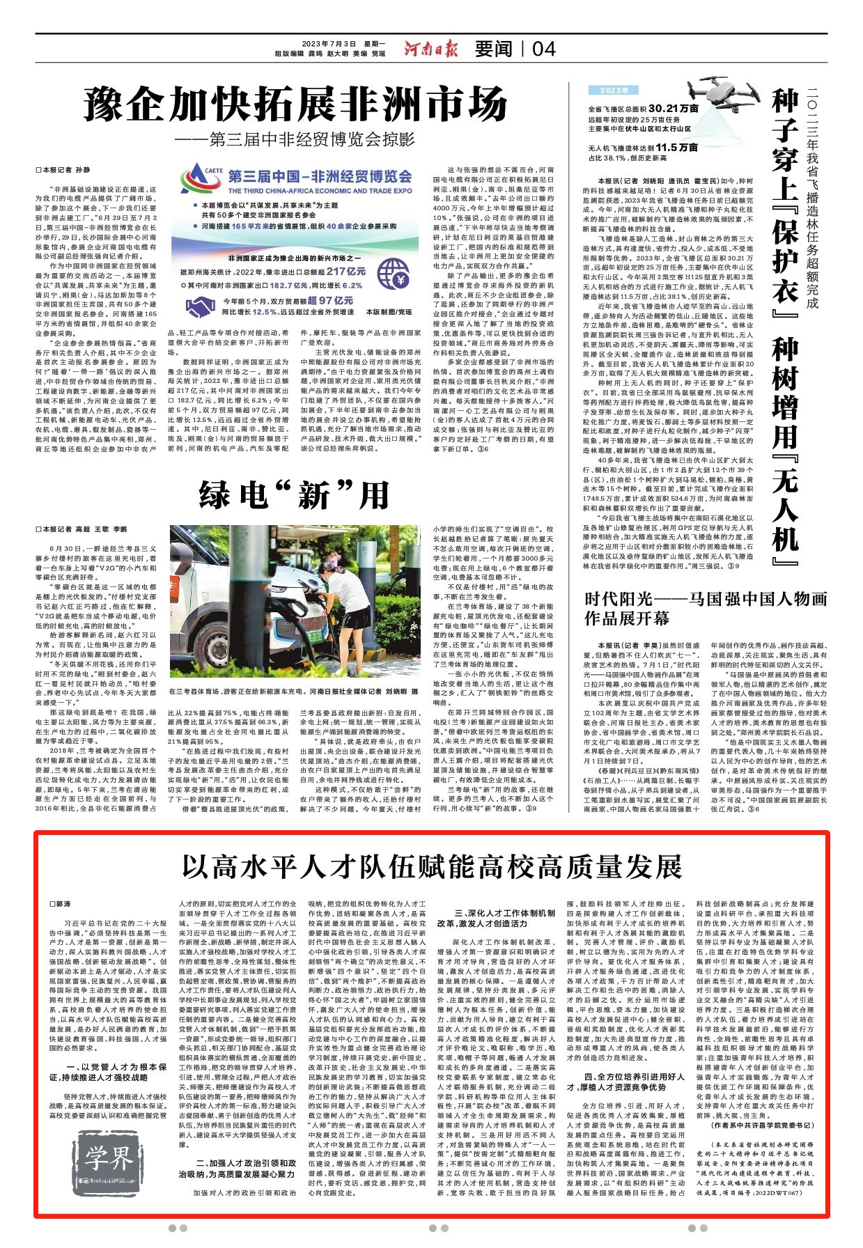 2023年7月3日,《河南日报》第四版刊发我校党委书记郭涛教授署名文章——《以高水平人才队伍赋能高校高质量发展》。