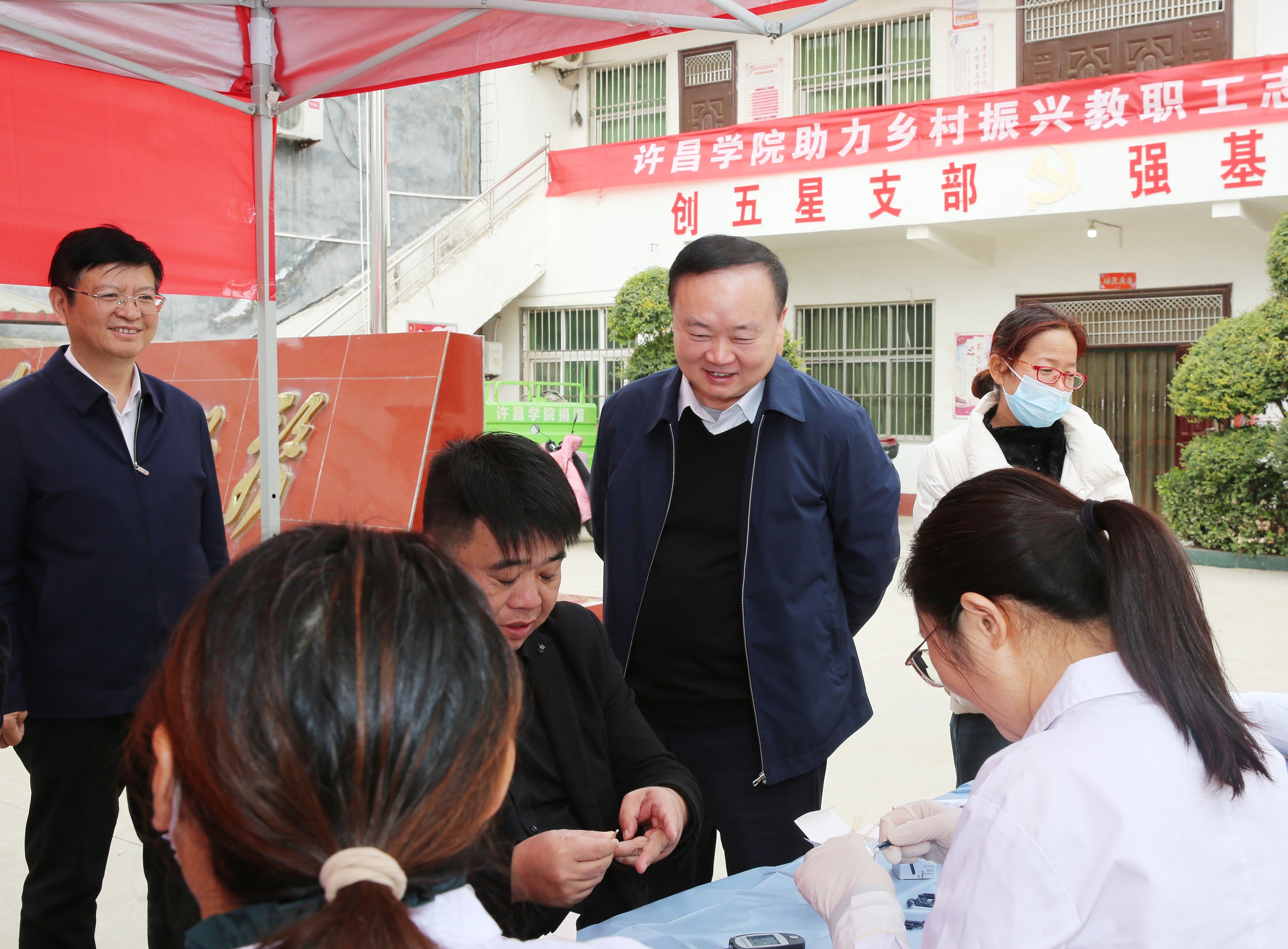 11月7日,校党委书记郭涛一行来到我校定点帮扶的许昌市建安区艾庄回族乡袁庄村,调研指导乡村振兴工作,开展助力乡村振兴爱心物资捐赠活动。党委副书记、工会主席梁予昉陪同。