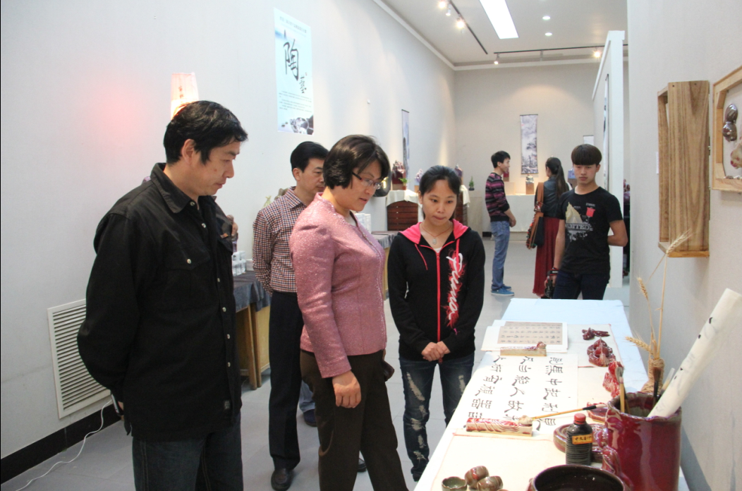4月29日,许昌市人民政府副市长秦春梅一行专程莅临我校吴道子美术馆,参观本届许昌三国文化创意产品大赛级暨毕业生作品展。美术学院院长王雨、副院长陈文利陪同参观。