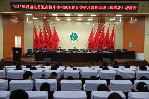 4月17日,2014年河南省普通高校毕业生就业统计暨信息管理系统(网络版)培训会议在我校图书馆学术报告厅举行。河南省教育厅学生处调研员杨占军、河南省大中专学生就业服务中心综合服务部主任魏鑫、许昌学院副院长崔斌、学生处处长陈彪、招生就业处处长张永祥等出席会议。来自全省120余所高校的170余名就业工作人员及我校各院就业专干参会。会议由我校招生就业处处长张永祥主持。