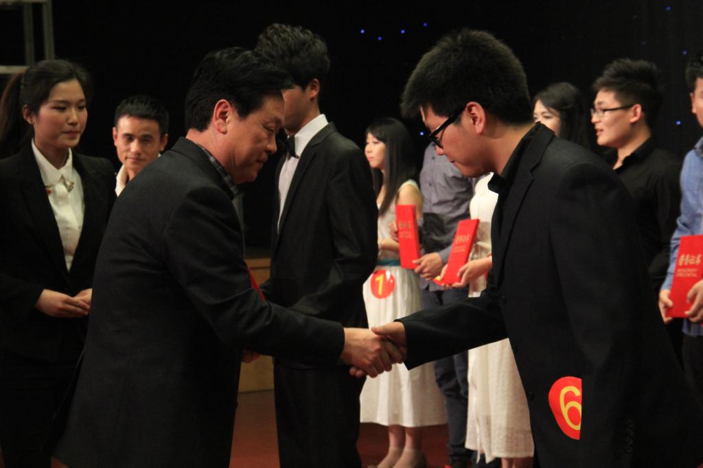 整场比赛异常激烈,业余组选手们在自我展示环节呈现给大家独具一格的演唱风格,在两两PK环节中更是展示出各自雄厚的实力。专业组比赛沿袭了青歌赛的模式,在演唱单曲环节之后加入了综合素质问答,从专业演唱和音乐素养多方面进行评比。大赛中无论是民歌小调,还是流行金曲、怀旧经典,都被选手们演绎得韵味十足。大学生艺术团指导老师王豪、音乐舞蹈学院声乐副教授翟静分别对业余组和专业组的现场表现作精辟点评,并对本次校园歌手大赛新颖的比赛形式给予高度的评价。最终,业余组比赛由音乐舞蹈学院谢晓秋的《还记得吗》、吴晶的《辛德瑞拉》荣获一等奖,专业组比赛由音乐舞蹈学院王潇拔得头筹。马超副书记等领导为获奖选手颁发荣誉证书,并对本次歌手大赛予以高度肯定。