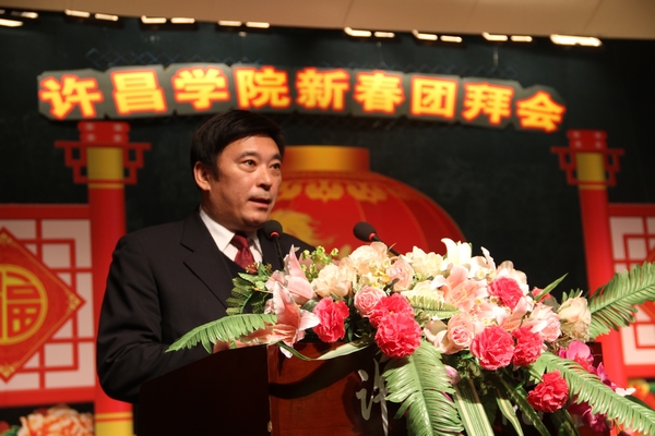 转型发展硕果累累辞旧岁,万马奔腾信心满满迎新春。1月13日上午,我校党政领导班子成员,全体中层干部,正高级职称人员、博士,离退休老领导和老同志代表,各民主党派和无党派人士代表,师生代表等在音乐厅欢聚一堂,隆重举行许昌学院2014年新春团拜会,辞旧迎新。