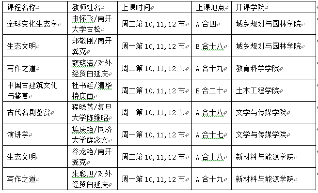 1.本学期开设校内公选课85门次,网络公选课配备校内助学教师8门次,网络课程61门次。校内课程安排在周一、周二的晚上第10-12节。网络课程配备助学教师课程,严格按照助学教师安排授课。独立网络课程则由学生利用课余时间上网完成课程学习及考试。开课具体安排见《18192学期公选课安排表》(附件)。