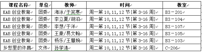 4.以下课程已通过遴选确定上课名单,选课名单已按照任课教师报送结果导入教学班级,学生无需再次选修该课程,也不得改选该时间段其它课程。