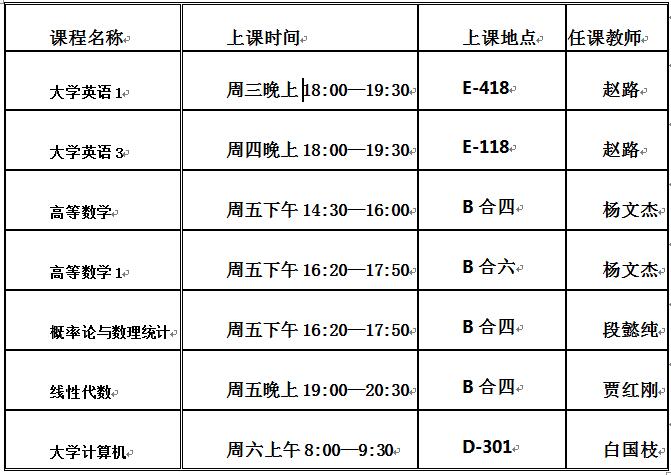 (注:以上课程的上课时间和地点是暂时的,开课前会再次通知具体的上课时间和地点。)