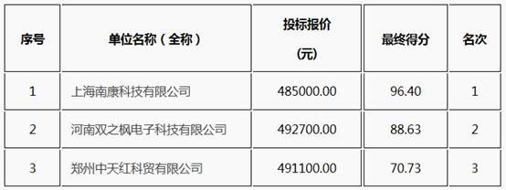 2、采购人确认中标供应商:上海南康科技有限公司,成交金额:485000.00元,地址:上海市徐汇区乐山路33号5幢3楼。