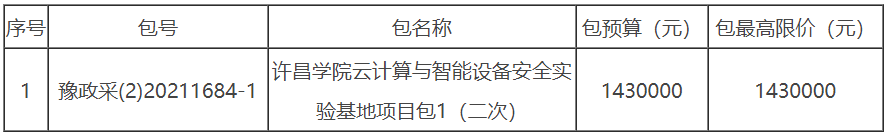 许昌学院云计算与智能设备安全实验基地项目招标项目的潜在投标人应在河南省公共资源交易中心网站下载获取招标文件,并于2021年11月23日09时00分(北京时间)前递交投标文件。