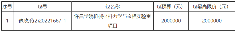 许昌学院机械材料力学与金相实验室项目招标项目的潜在投标人应在河南省公共资源交易中心(http://www.hnggzy.net/)获取招标文件,并于2022年09月29日09时00分(北京时间)前递交投标文件。