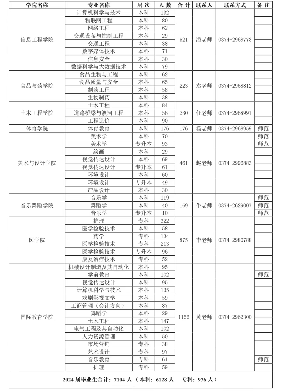 我校2024届毕业生共计7104人。其中,本科毕业生6128人,专科毕业生976人,涵盖理学、工学、文学、史学、法学、经济学、管理学、教育学、艺术学、医学等十个学科门类。