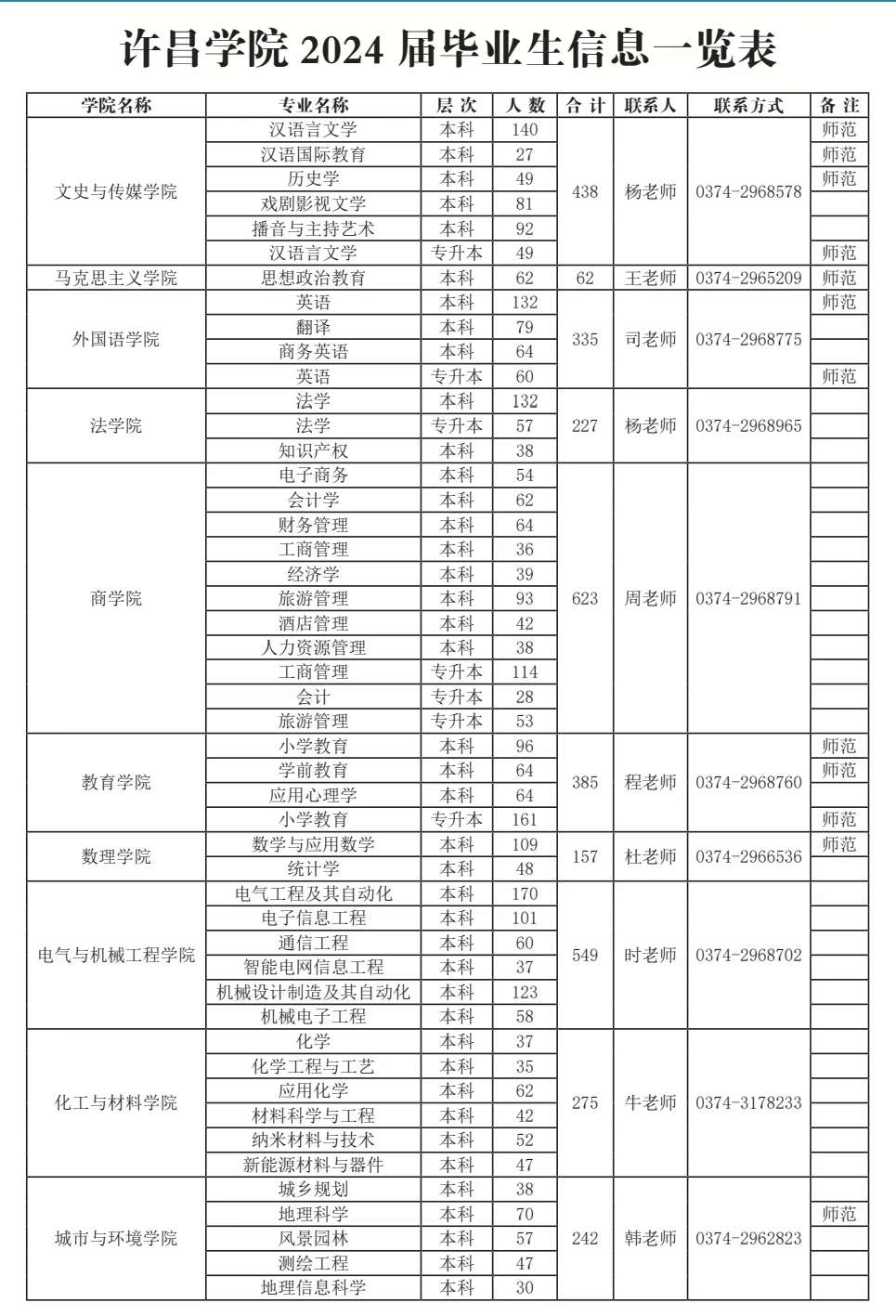 为贯彻落实党中央、国务院、省委省政府“稳就业”“保就业”工作部署要求,促进毕业生高质量充分就业,为各用人单位提供优质高效的人才精准对接服务,现将我校2024届毕业生生源信息进行发布。