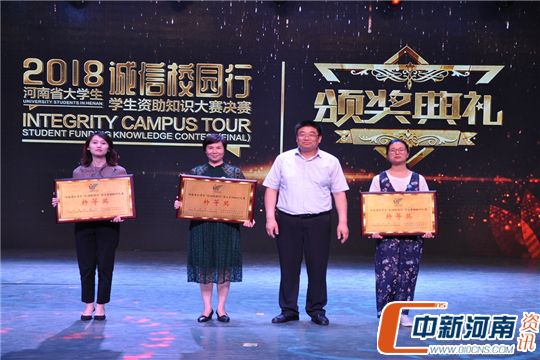 中新社河南分社许昌5月21日电 2018年5月17日下午,河南省大学生“诚信校园行”学生资助知识大赛决赛在许昌学院音乐厅落幕并举行颁奖典礼,河南省教育厅副巡视员李金川出席颁奖典礼并发表讲话。河南省学生资助管理中心主任宋振、副主任田新,许昌学院党委书记闫纪建、副院长郭涛,河南省教育厅发展规划处、学生工作处、思想政治工作处等相关职能部门主要负责人,以及中国银行业监督管理委员会河南监管局、中国人民银行郑州中心支行、国家开发银行河南省分行等有关单位负责人与各高校学生资助工作负责人出席比赛活动。