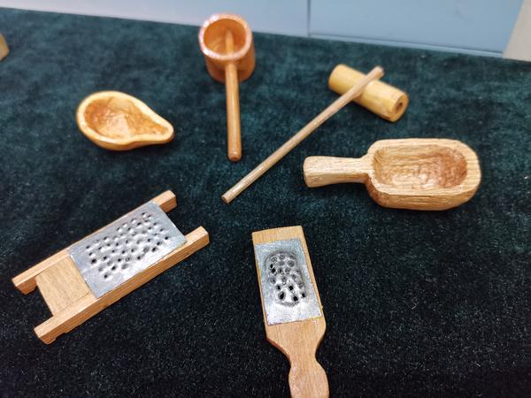 这些泥塑是微型雕塑,共200件,其中人物造型170件、道具30件,一共组成了如“茶余饭后”“休闲娱乐”等17组农村场景。中原农耕文化博物馆名誉馆长汪庆华介绍,微型仿真模型共有1200多件,这次展出500多件,涉及的微型模具有编制工具、养殖器具、炊事饮食、育儿用具、家居生活、榨糖制茶等,全方位展示了传统农耕时代的生产工具、生活器物等各种用具。
