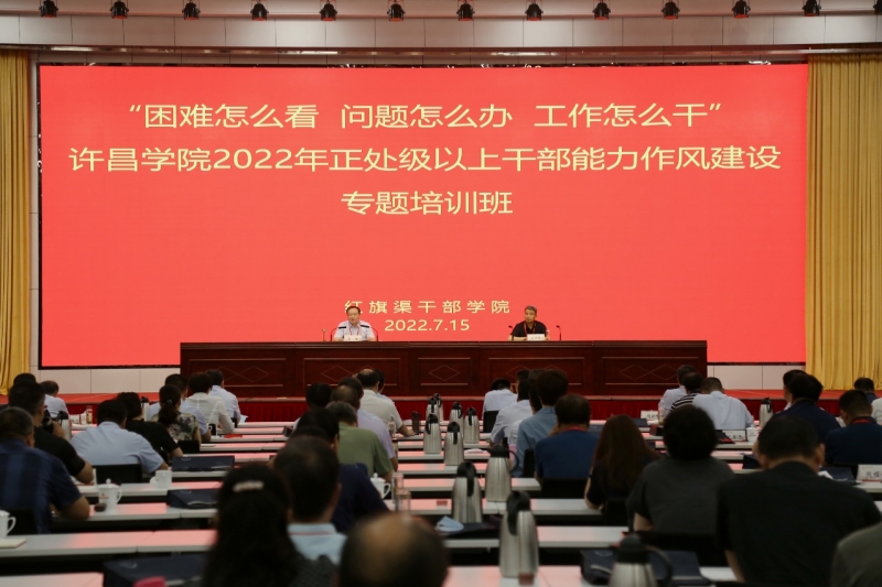 7月15日,许昌学院正处级以上干部能力作风建设专题培训班在红旗渠干部学院圆满结束。当天上午,校党委书记郭涛作《认清形势 统一思想 坚定信心 攻坚克难——奋力推进高水平应用型大学建设》专题报告,校长岳修峰作《坚持全局观念系统思维 凝心聚力善谋实干 为实现高水平应用型大学努力奋斗》专题报告。会议由校党委书记郭涛主持。全校正处级以上领导干部参加学习。