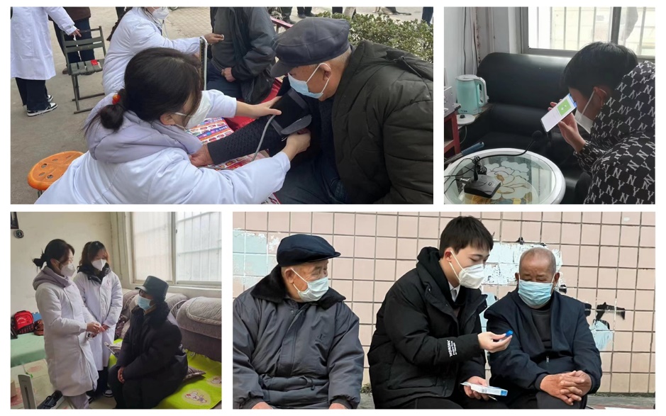医学院2022级医学检验技术专业学生赵烁家住许昌,她与护理专业的陈胜楠、谭梦娟两位同学一起,报名加入了袁庄村医疗援助志愿服务队,到出行困难的老人家中走访,为老人提供基础的身体健康检测,科普用药常识,帮助他们解决日常生活中遇到的问题。在村头巷尾,同学们化身“小护工”为老人讲解用药常识、听诊、量血压,并为老人讲解“阳康”后的注意事项。