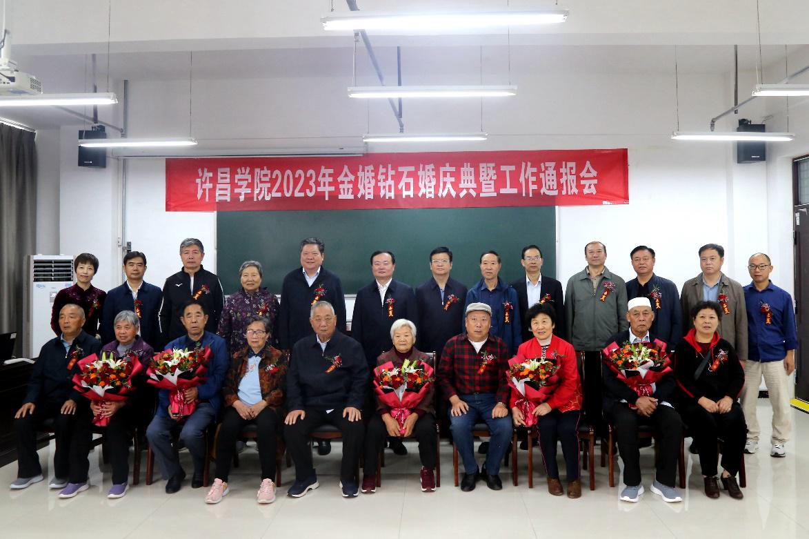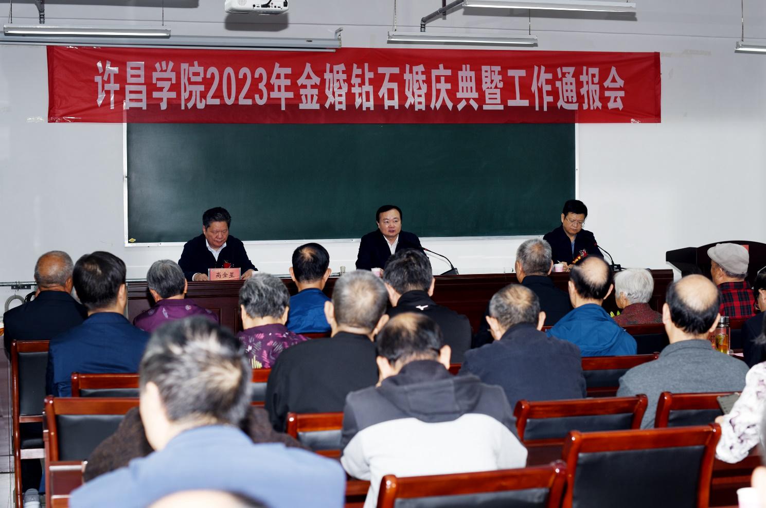 10月18日上午,许昌学院2023年重阳节金婚钻石婚庆典暨工作通报会在教师活动中心老年大学举行。校党委书记郭涛,党委副书记、工会主席梁予昉,副校长高金星出席。党委办公室、党委组织部、党委教师工作部(人事处)、离退休工作处等职能部门负责人,金婚钻石婚伉俪代表和离退休老同志代表参加。庆典仪式由梁予昉主持。
