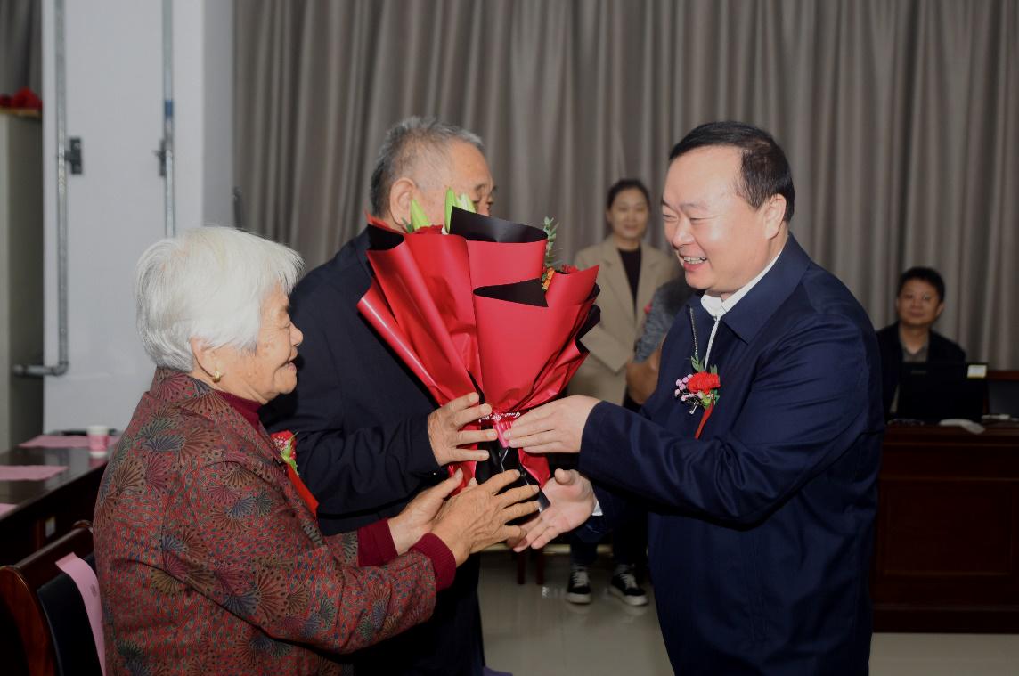 仪式上,郭涛代表学校党政领导班子和全体教职员工,向金婚钻石婚伉俪表示热烈的祝贺,向全校老同志致以节日的问候和衷心的祝福。他指出,离退休老同志是党和国家的宝贵财富,也是学校事业发展的重要资源和重要力量。全校各单位尤其是离退休工作处,要带着感情、带着责任抓好抓实离退休老同志工作,从政治上关心、生活上照顾、工作上重视、情感上贴近,常怀尊老之心、恪守敬老之责、多做利老之事,认真执行好党和国家的老干部政策,落实好老干部的待遇,让老同志老有所养、老有所为、老有所乐,生活幸福美满。