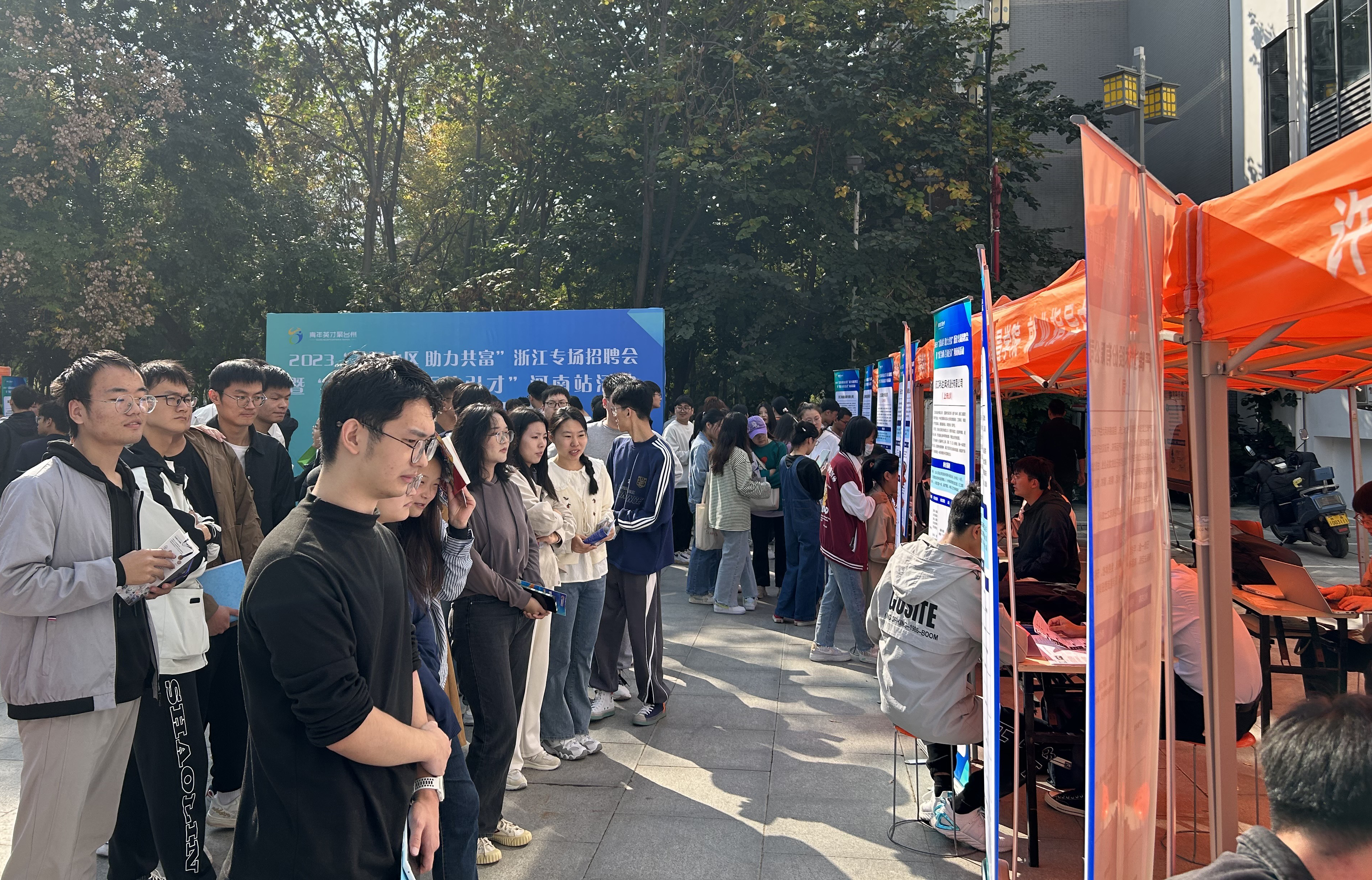 招聘会现场,用人单位向毕业生介绍企业发展、岗位需求,薪资待遇等情况,毕业生们结合自身优势和兴趣积极投递简历,低年级学生深入了解行业企业发展及实习就业信息等。相关学院领导和就业工作教师向参会企业调研就业形势,了解专业需求,积极推介毕业生。